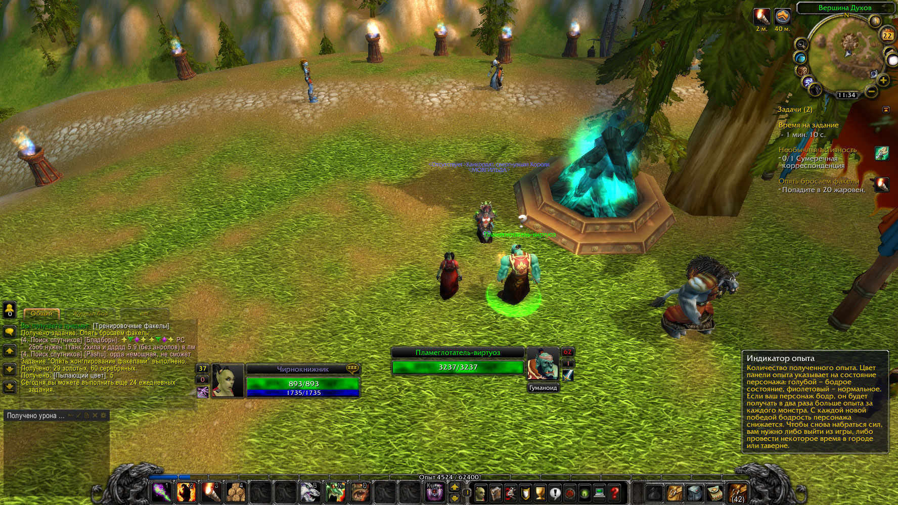 Вот. Там два "синих" задания, "опять жонглирование факелами", "опять бросаем факелы". В чате видно, что задание завершено, но опыт не начислен, полоска опыта осталась на месте. Вчера всё работало.