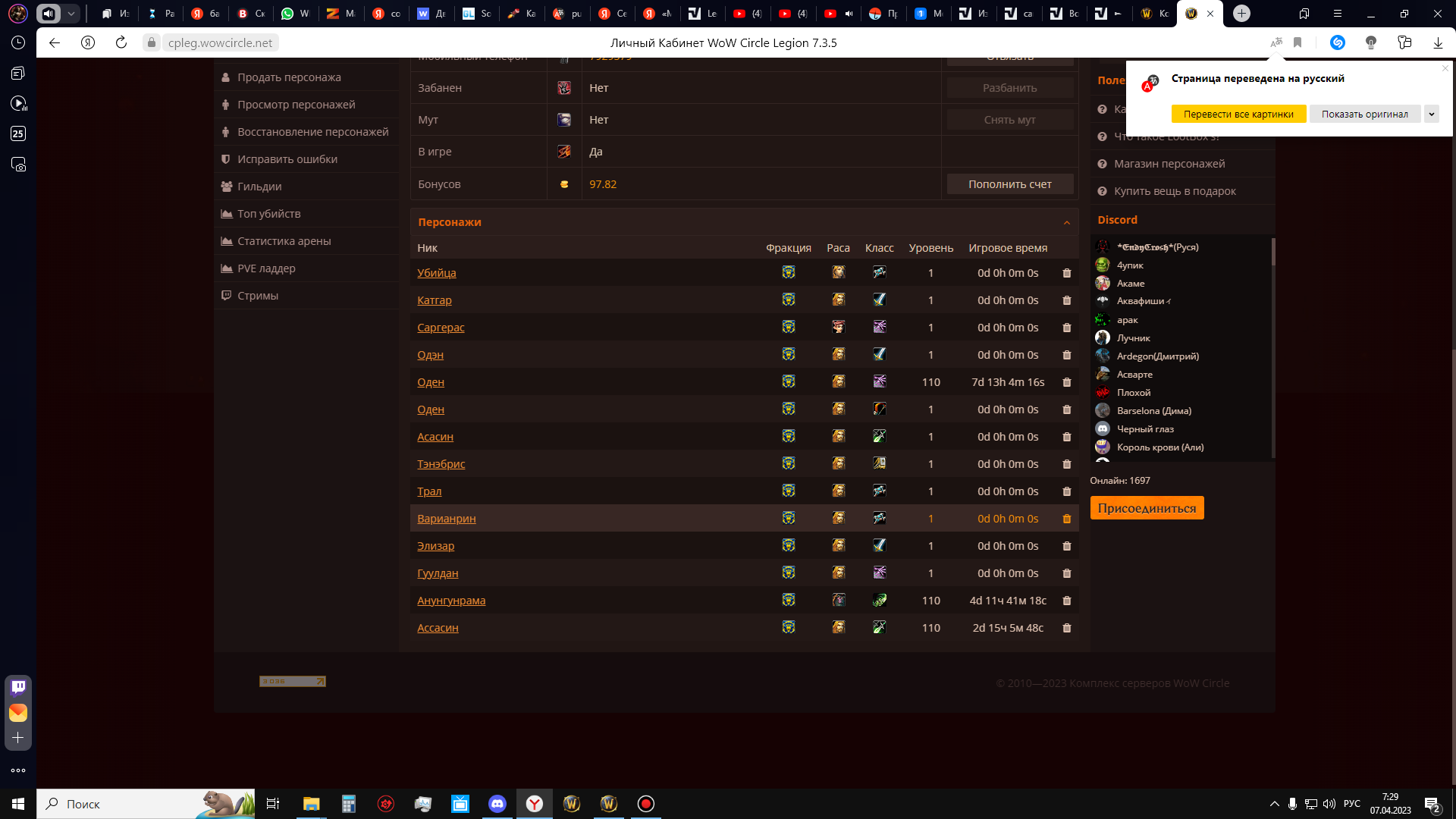 5. Скриншот с личного кабинета со списком удалённых персонажей на вашем аккаунте