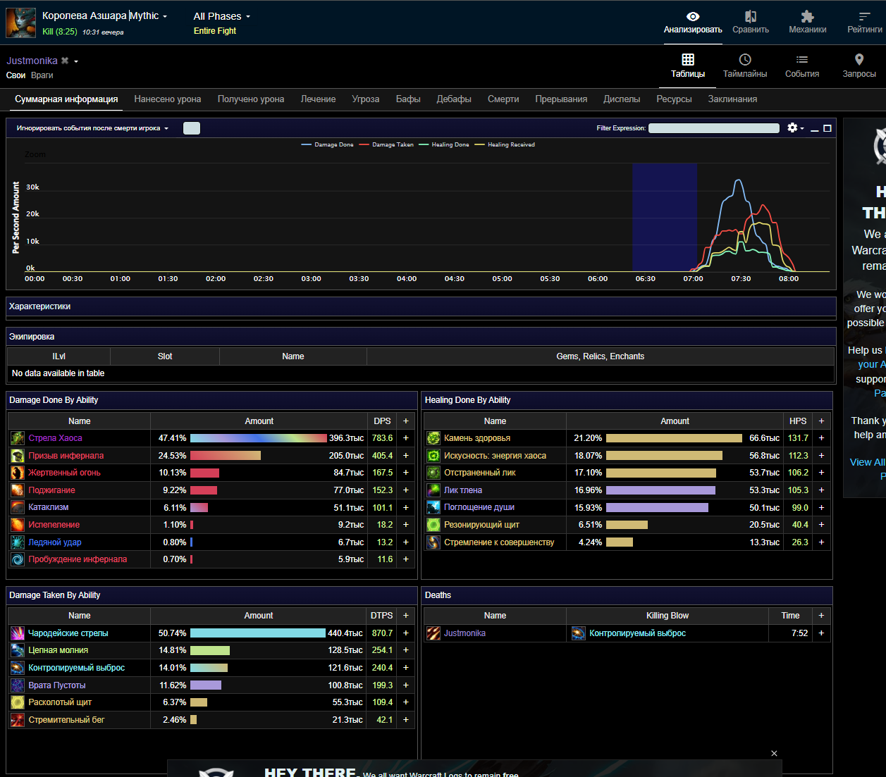 @Моникакороче, судя по логам, вы были на вайповых трайях и уже знали о баге и прознав начали злоупотреблять им до удачного убийства босса, залетев опять на след трай под канец, закину инфернала и циклично прожимать ротацию, вывод из всего этого забанить вас всех нужно, кто абузил это