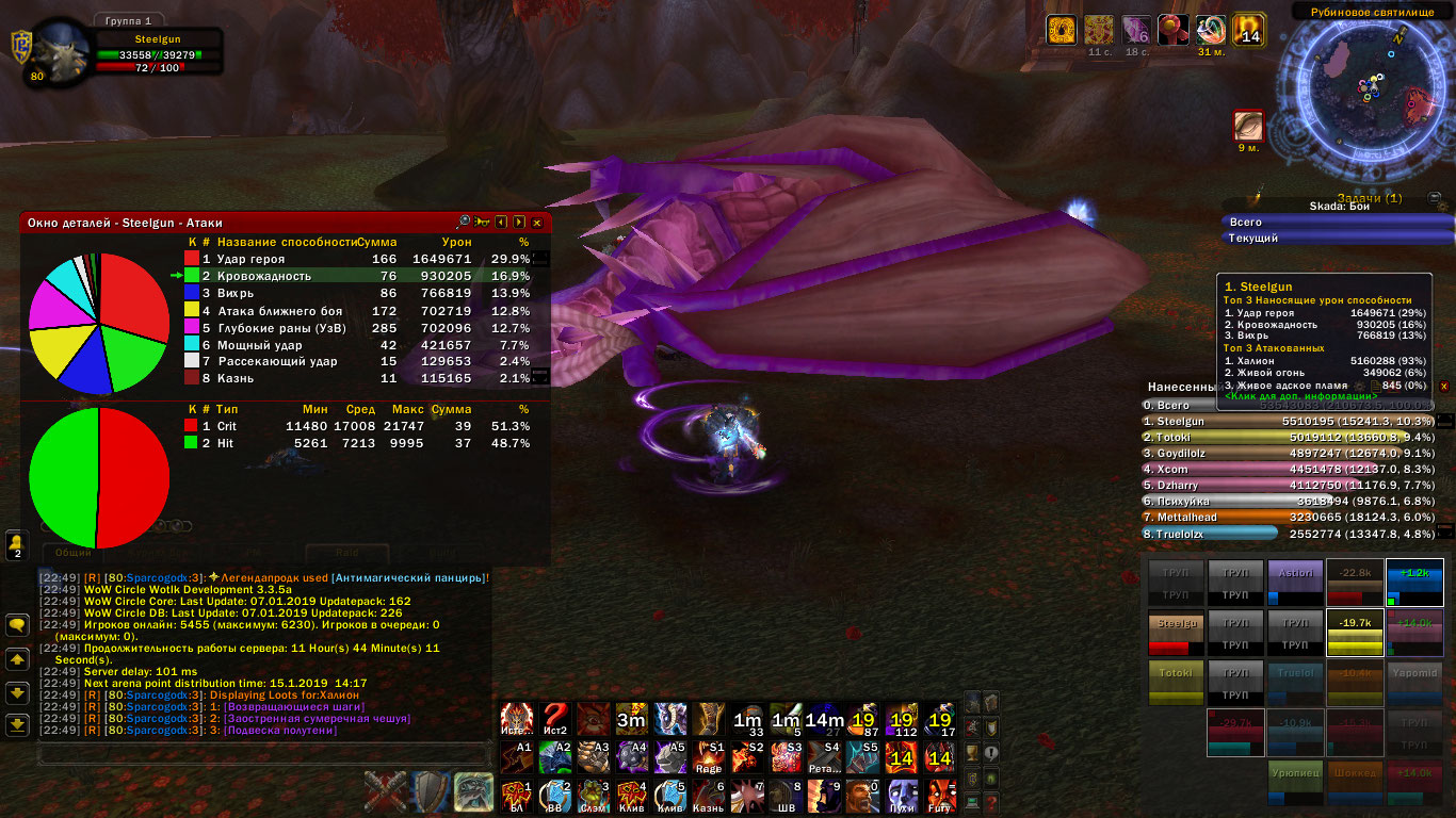 Последний раз бил без шм дпс был 18500, в общем шм даёт вару плюс минус 2500 дпс где то, если кому интересно)