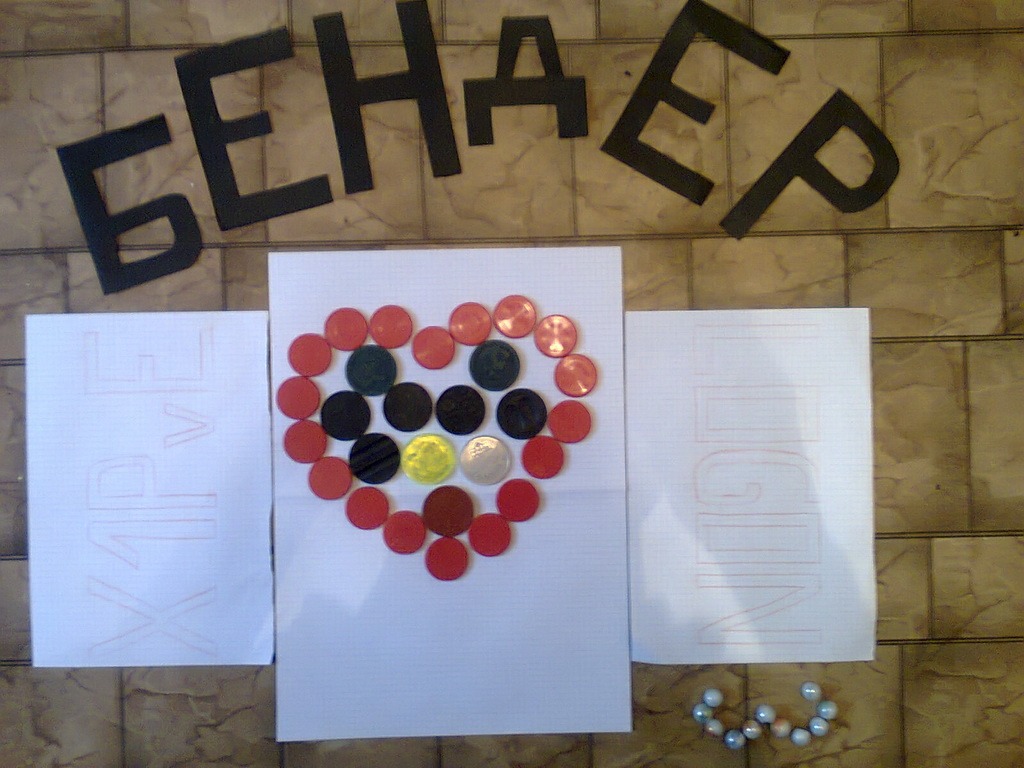 2.Материал: Бумага, карандаш, черные конверты, фишки игральные, шарики разноцветные фарфоровые