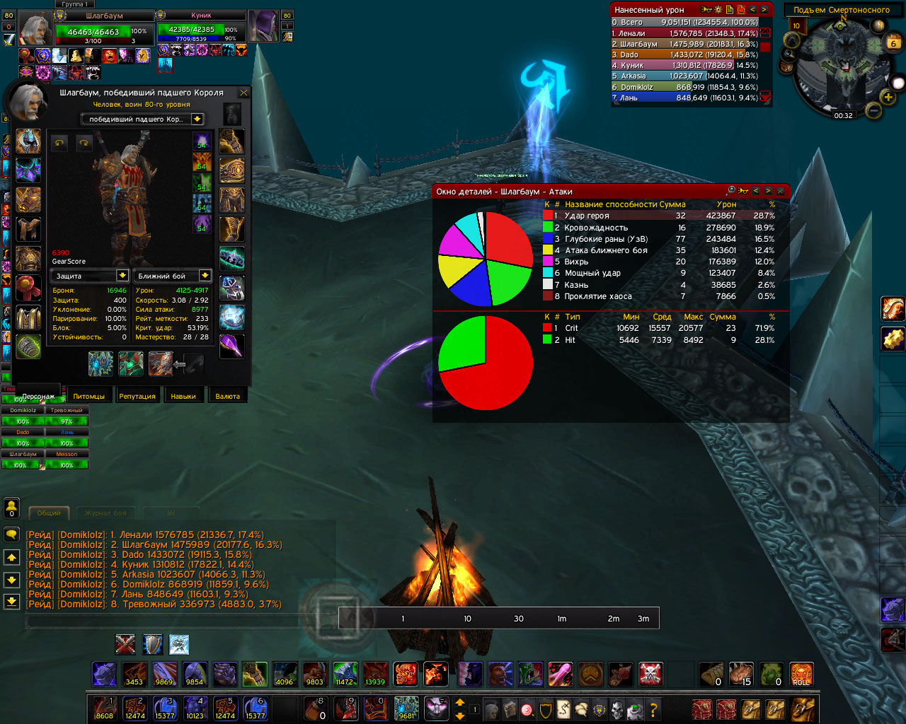 Как-то кисло...Одного уронили,босс отхилился на 5%,дпс немного снизился. Кстати,второй по дпсу вар одет в бис.