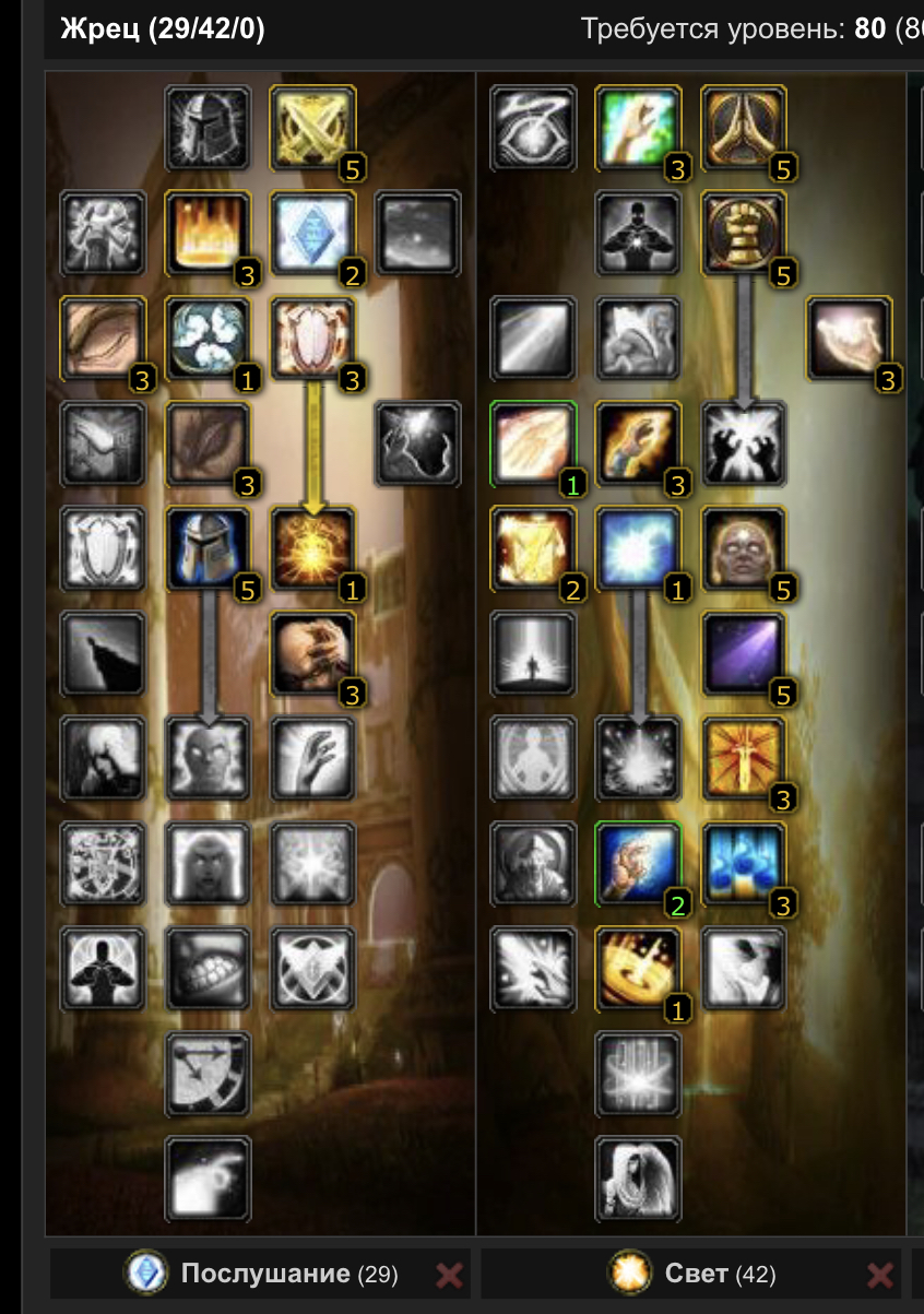 https://wowroad.info/?spell=17191 прокачал - https://wowroad.info/?spell=63543 заигнорил - отличный план, надежный, как швейцарские часы прям, этот тал тебе даст примерно 1/3 отхила от https://wowroad.info/?spell=27606
