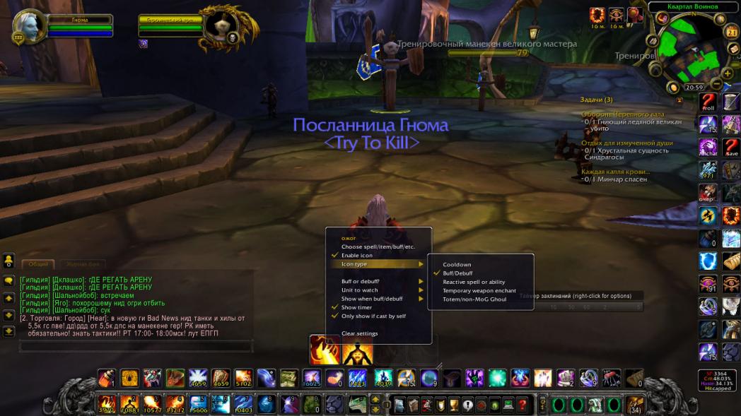 Вписывать в аддон надо именно такое название которое висит у вас в бафах. Ну или на босе После окончания настройки пишем /tmw чтобы закрыть режим редактирования. Если хотябы одна галочка стоит неправильно, аддон работать не будет. И да, так как у нас кирка под фул бафом в цлк бывает пропускает проки.