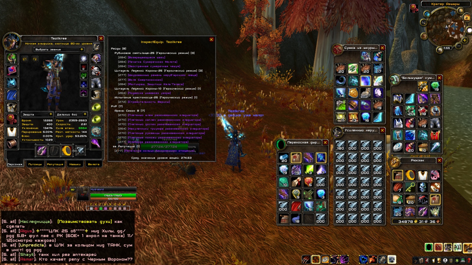 Здрасте, кто с 2012 тут - меня узнает. Топ хант во времена 2012-2014 Отрываю от сердца своё творение : ФУЛ БИС ВО ВСЁМ охотник. ЕСТЬ АБСОЛЮТНО ВСЁ. Воля, чешуя, приговор, веапоны 284. Бис арп (55+%) \ап (+-7k ap) гир пвп (8\8 офк),. Тонны шмота на транс. Любыми клешнями топ дпс в пве. Был апнут Неумолимый гладиатор в ранних сезонах (жаль что не актуально, после сброса званий). Куча маунтов, в т.ч. с лича, призрачный кот, поводья багрового коня смерти и тд. Цена договорная, продавать - не спешу. Как лежал тут он почти 2 года неактив, так и будет ждать нового хозяина. Скрины ? не вижу смысла - кому надо покажу в игре.