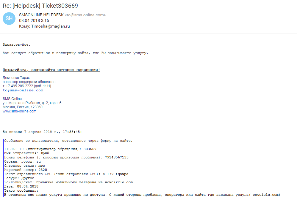 Что ясно-то? Если проблема не на нашей стороне, то почему и как мы её должны решать?