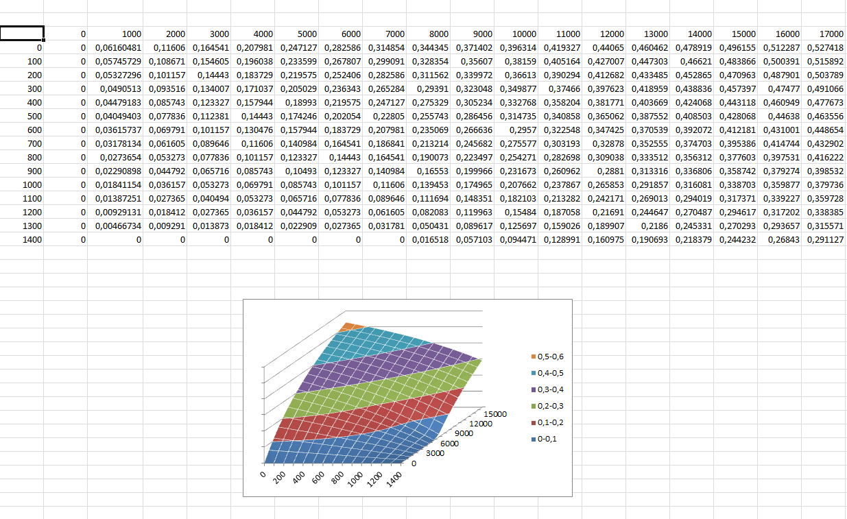 (954 - 1592) + (3.3 * 6000/14) = овер