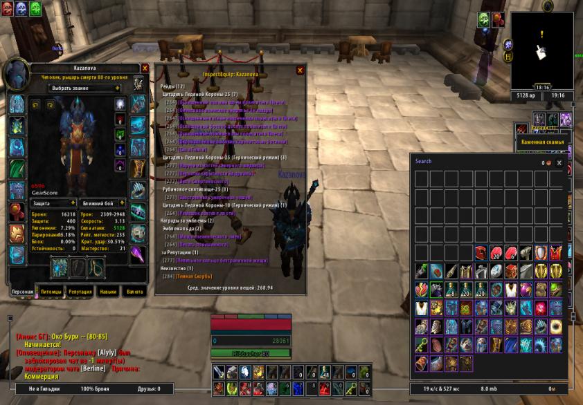5.Хорошо одет//из оружия имеется Тёмная скорбь(легендарный топор)Бринтроль костяной судья(цлк 25 об)Клинок очищения рамаладни(цлк10гер)Клеймор охранника цитадели(цлк10гер)тринкеты Воля смертоносного(цлк25гер) Заостренная сумеречная чешуя(рс25 об) для танка есть ключ,сердце,орган танком мало играл поэтому в танка т10 1 чуть подфармить льда и есть токены чтобы на изи сделать танка//пвп фул а8 обвес3/5а8 голова плечиа7 ибо несильно играл в пвп но есть достаточное количество АПА при поднятии рейтинга сразу купите что нужно//в пвп есть возможность сделать пве обвес, в пве имеется 4т10(2) из обвеса(Раздирающие плоть рукавицы(цлк25гер)Кольцо повелителя скелетов(цлк25гер) Наручи из когтей северного медведя(цлк25гер) Ониксовое воинское ожерелье Анкахара(цлк 25об) Окровавленые высокие саронитовые ботинки(цлк 25об) так же есть возможность из пве анхоли сделать пве блада для этого есть нон сет с арп статами такие как Перчатки скрытности алдрианы(цлк25гер) Сила гнили(цлк 25об) Ремешок ваятеля плоти(цлк10гер) вам всего лишь поменять несколько камней на арп и вуаля.из профессий вкачано Ювелирное дело и Кузнечное дело ибо по подсчету статами дает больше+/ну весь шмот перечислять небуду более менее видно на скринах/Наиграно 45дней.Имеется много разных званий Так же есть много ачивок по фану, есть легендарный маунт Черный киражский боевой танк + Пепел Алара.так же есть много разного трансмута в банке////если кого интересует могу показать в игре,а так вообше персонаж стоит в личном кабинете