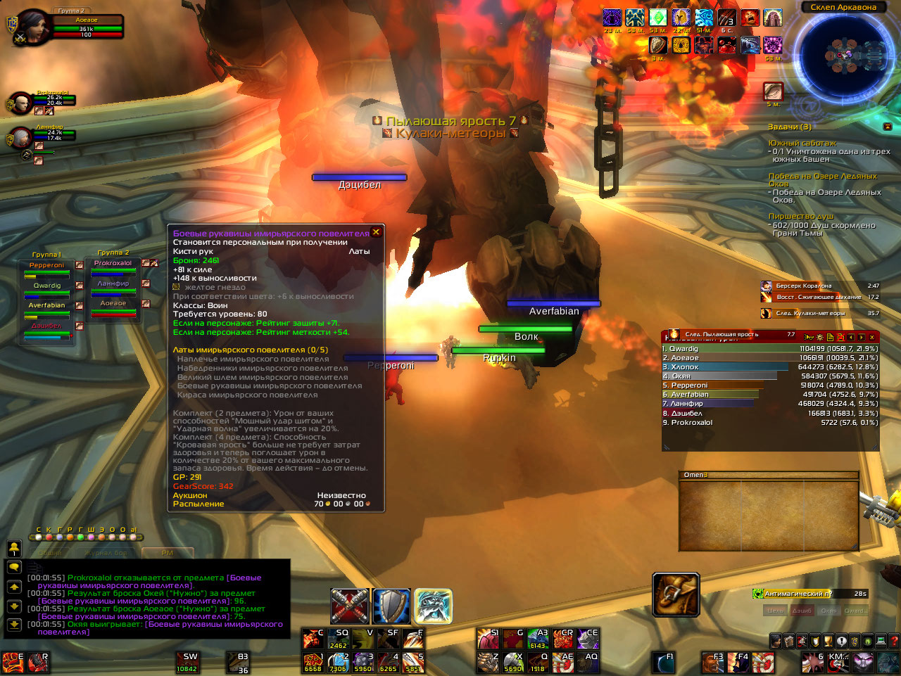 Кинул на Кисти рук с рейдового подземелья "Склеп Аркона(СА)", отдал танку дк...(предположение, его другу)