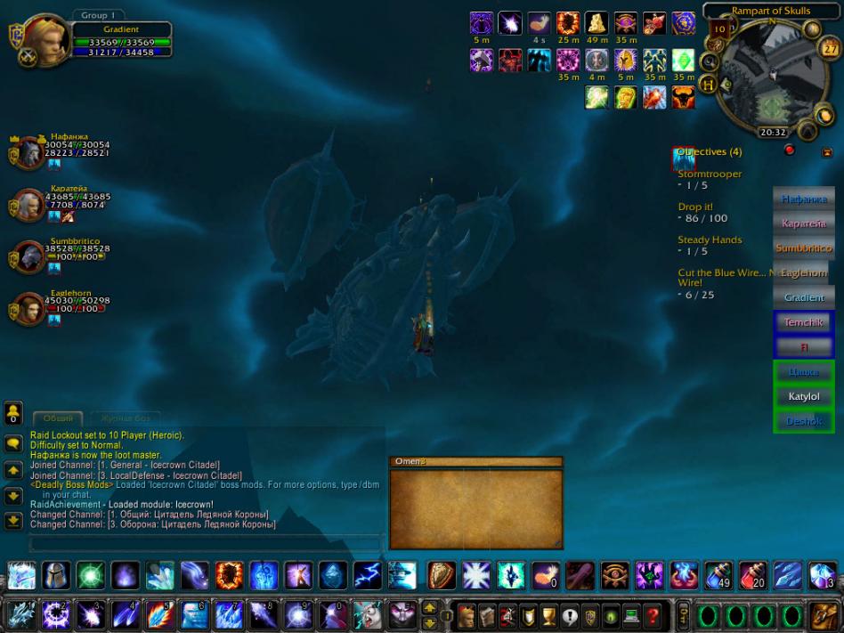 сегодня пришлось релогаться всему рейду, чтоб добраться до мурадина и запустить его. у всех пропадали нпс на корабле.