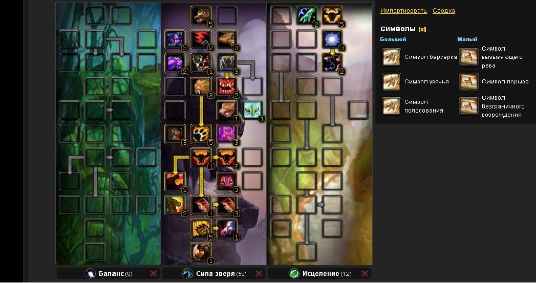 Когда раскидываешь таланты(что на мишку что на кошку) постоянно возникает мысль - вот бы мне еще пару очков талантов ну или хотя бы один ... Так что если делать общий билд и на кошку и мишку - то либо тебе придется брать ряд бесполезных для кошки и полезных для мишки талантов и тем самым уменьшать свой ДПС, либо брать полезные для кошки но бесполезные для мишки талы и тем самым уменьшать свое агро и выживаемость. С символами будет та же ситуация. В итоге будем иметь жирного кошака который дамажит хуже чем мог бы и тощего медведя который выживает хуже чем мог бы.