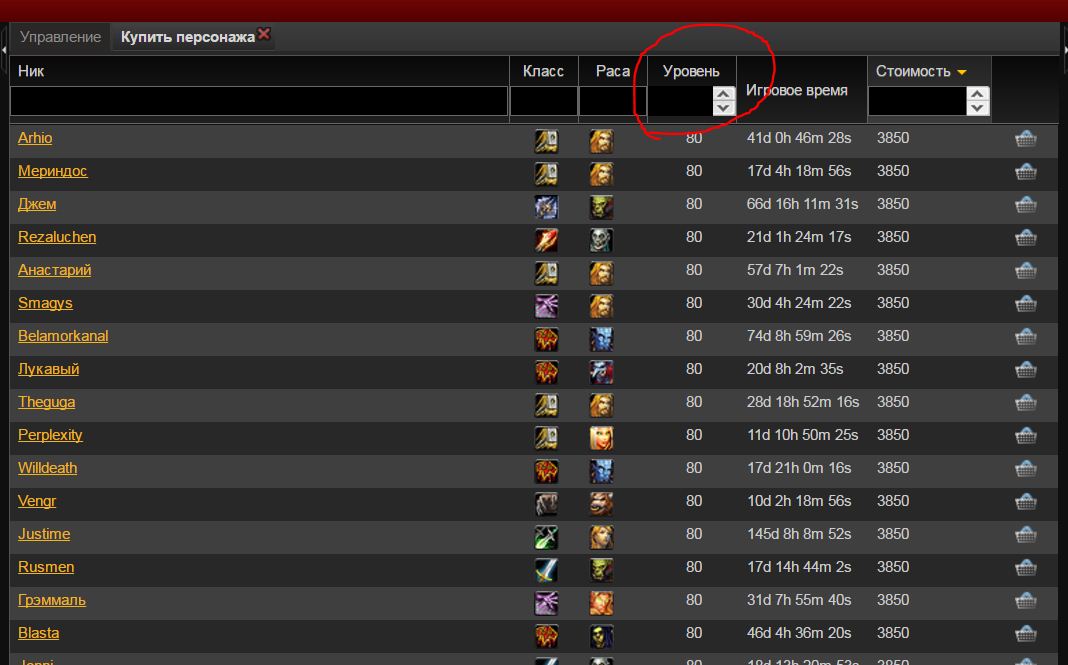 зачем в личном кабинете сделали графу Уровень. Сделайте разрешение продавать персонажей с 19 лвл от 20 дней онлайна примерно, чтобы всякий шлак не выставляли.