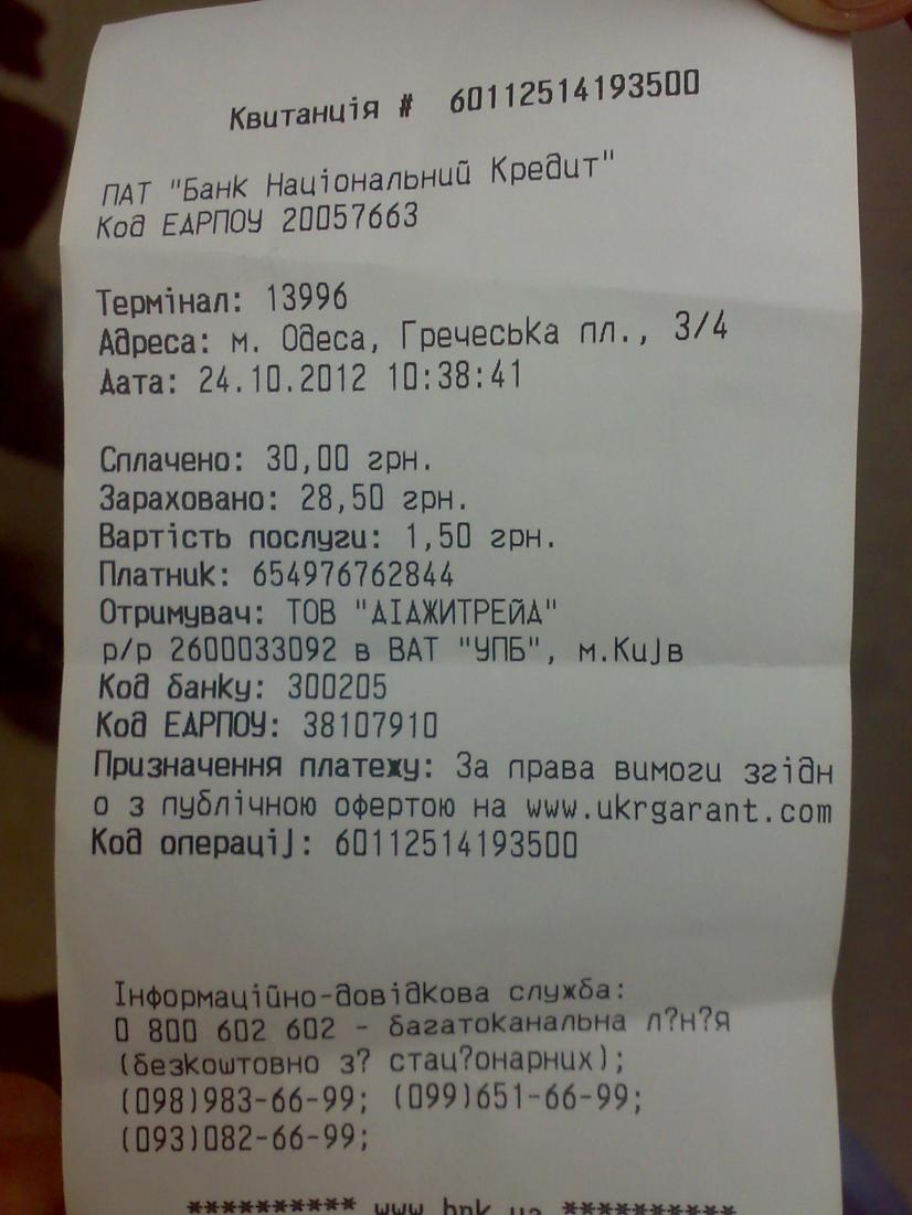 Не знаю надо выкладывать или нет, написано что только скрины платежей КИВИ и чеков тут выкладывать, но люди выкладывают и такие: