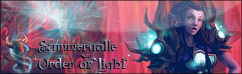 Тематика паладина. Фон на ваш вкус, главное что бы сила света подписи проникала в душу смотрящему и исцеляла его. Так же анимацию и уделить внимание шрифту ( он должен быть прекрасен как этот класс ). так же можно взять тематику с тираэлем или что то в этом роде.