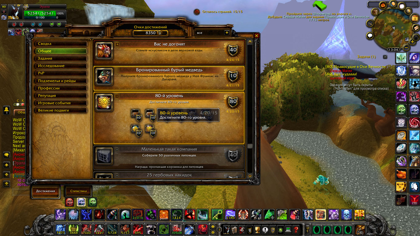 Сервер инфо в чате, скриншот достижения 10-110го уровня.