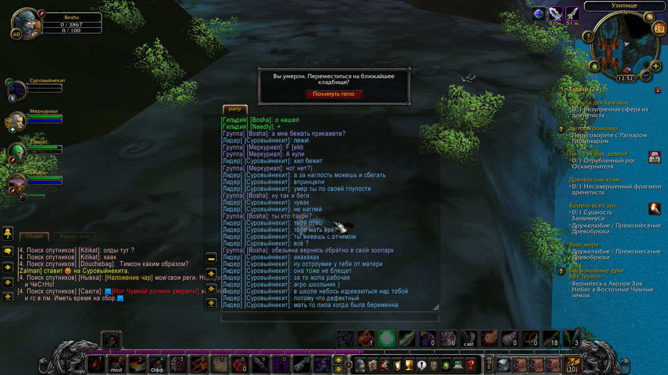 3. Оскорбление родных, весь диалог виден на скине. Я попал уже к первому босу по всей видимости ктото ливнул.