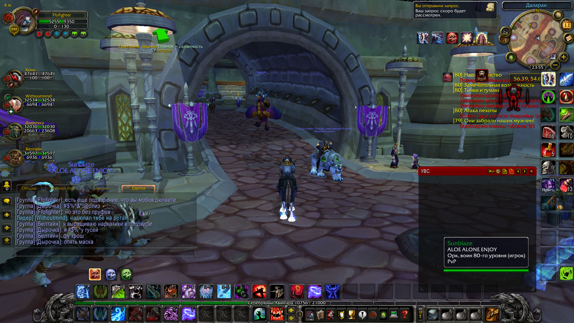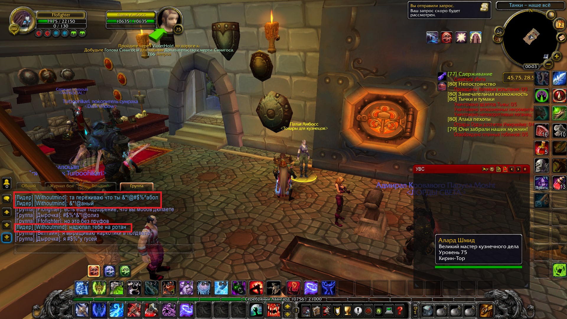 3.Оскорбления, не в первый раз данный человек регает ПП, после чего начинает писать в чате оскорбления, что мы пати нубов и он не будет нас хилить, при этом сам из пати не ливает, стоит АФК в тернистой долине и сыпет гряью в людей. Естественно, люди вынуждены ливать из пати и получать мкд на рег ПП, что мешает игровому процессу, обычно он в пати с теми людьми, которые есть на скриншоте "КОНЬ", "Дырочка".
