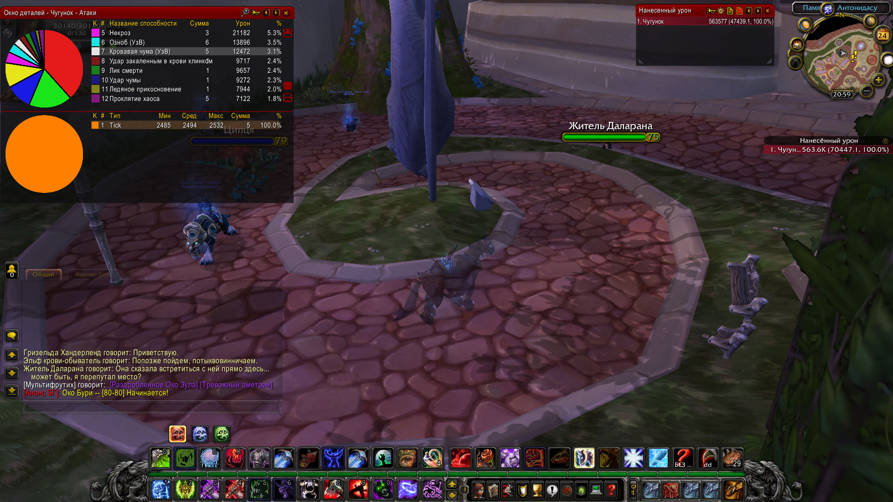 X100 сервер. дк с ником Чугунок. Обычнй ргер, Дк нежить в анхоли стойке в белде блад ваншотает весь инст. Такчит боссов в анхоли стойке в соло за 8 секунд с дпс 47к