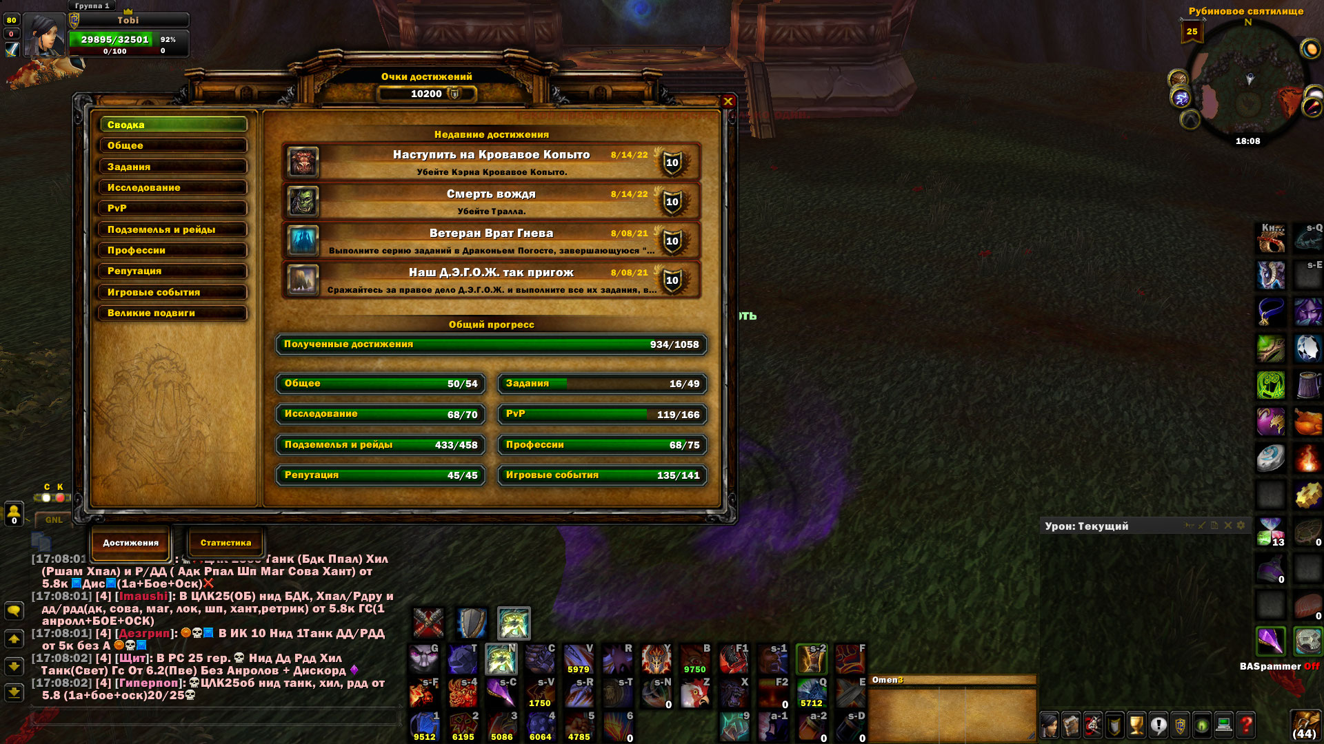 На персе 10к ачив, куча званий, маунтов, трансмута. Фул донатные сумки на 36 ячеек, сделано пт и есть для него шмот.