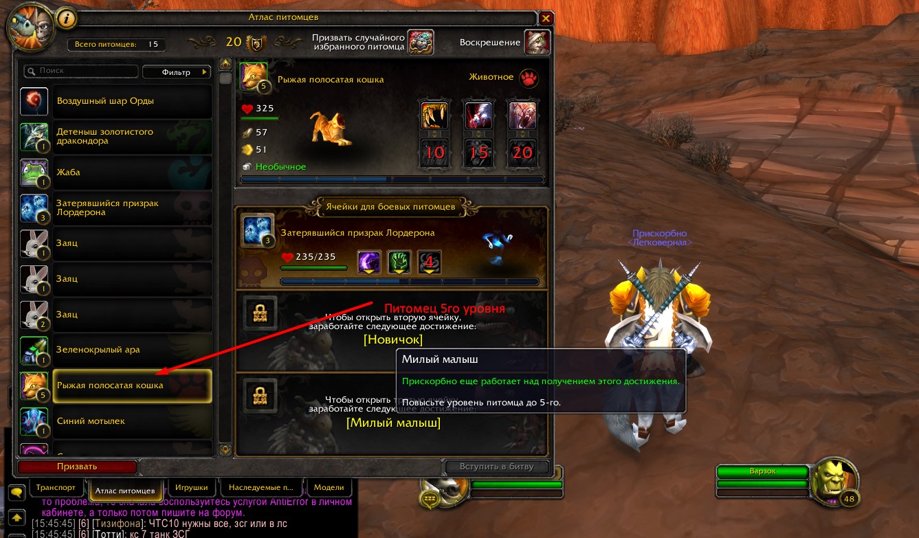 1) Ячейки боевых питомцев