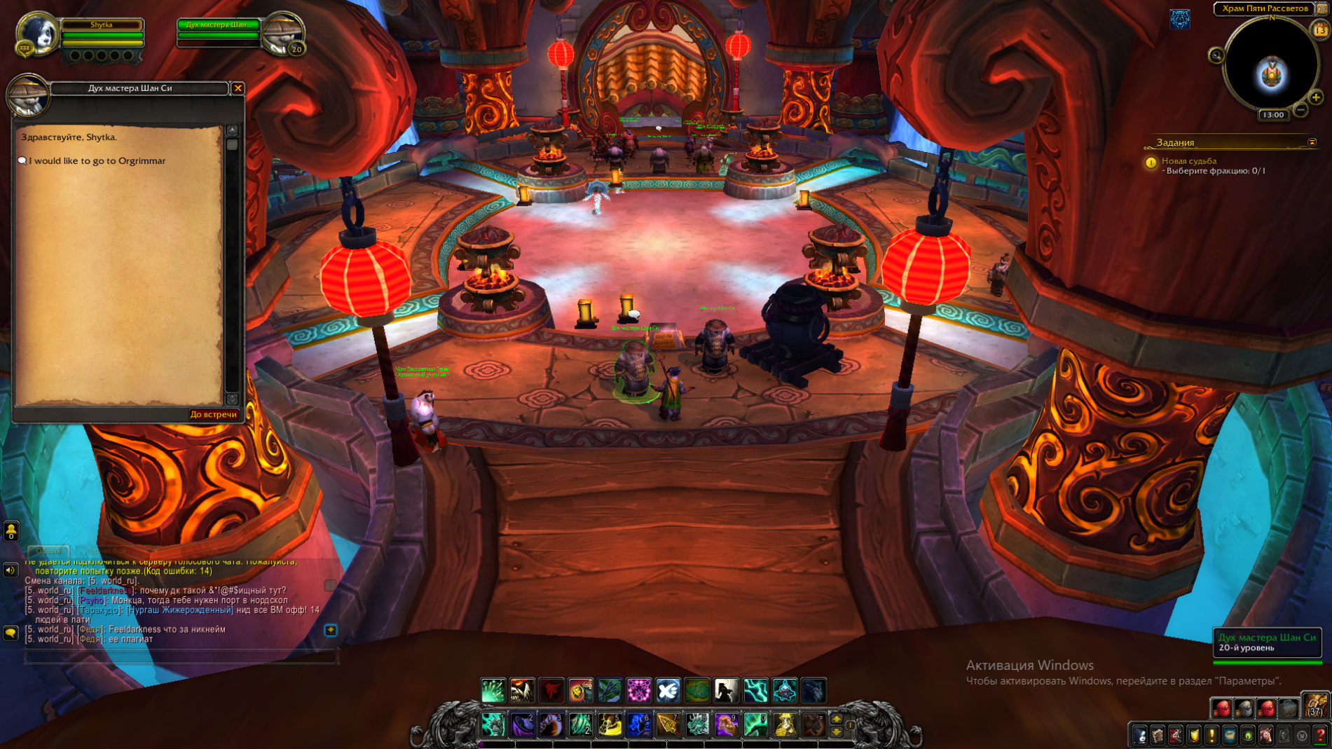 Беру задание, нужно выбрать фракцию, нажимаю на NPS, телепортирует в Оргриммар, но задание не выполняется, пытался исправить через сброс ошибки, но не получилось