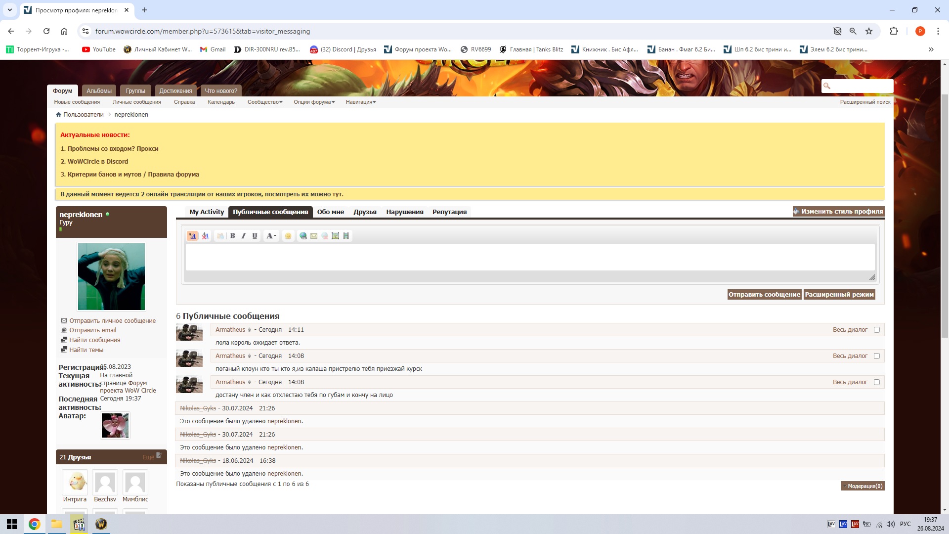 Примечание администрации:вначале девица просто так кидает жалобы и пишет в личку потом плачется!