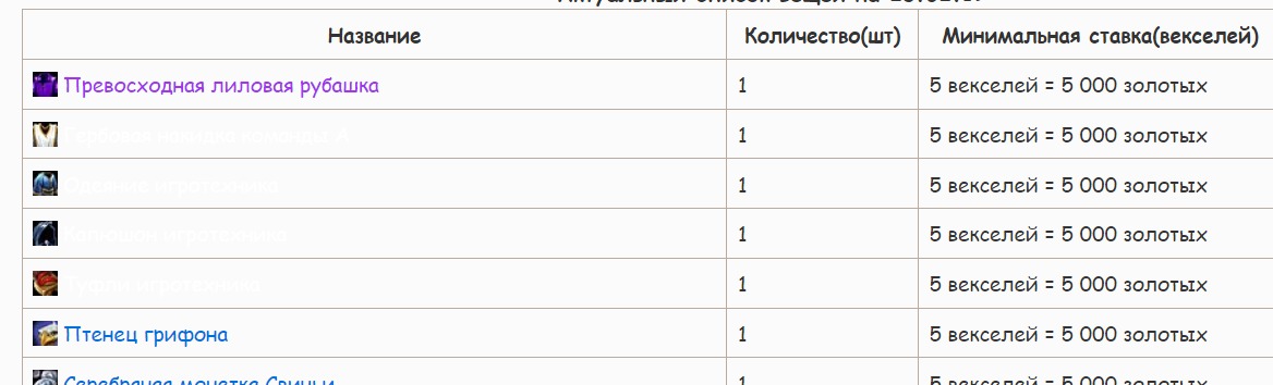 — Игроки могут делать ставки до 214000 векселей(= 214 000 000 золотых) , а также увеличивать предыдущую ставку минимум на 5%, но не менее, чем на 1 вексель.