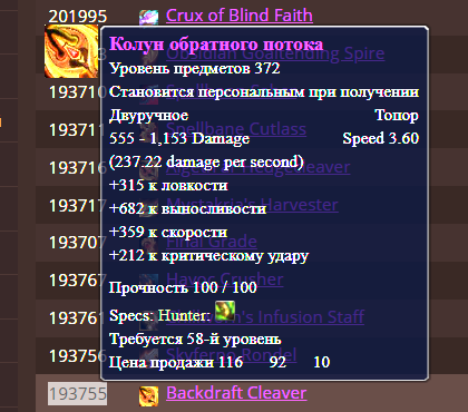 5. Ссылку на итем с https://wowroad.info/ (для легион с https://www.wowhead.com/ru/) и его цена в бонусах, и дата покупки.