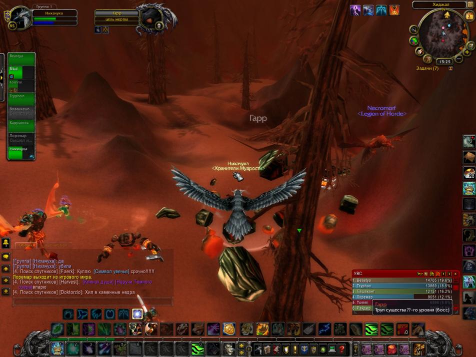 3)Воин находясь на флай маунте держал агро босса Гарра на себе, чтобы босс не реснул ХП, в это время остальные били босса.