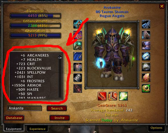 вот так выглядит окошко "/gs" нормального GearScore: Вложение 140794 Все статы наместе и аддон пашет исправно.