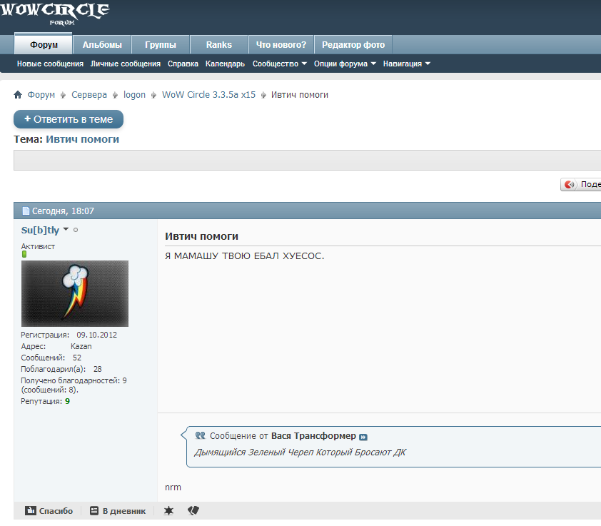 Сообщение для пользователя:Оскорбление родственников гейм-мастера.