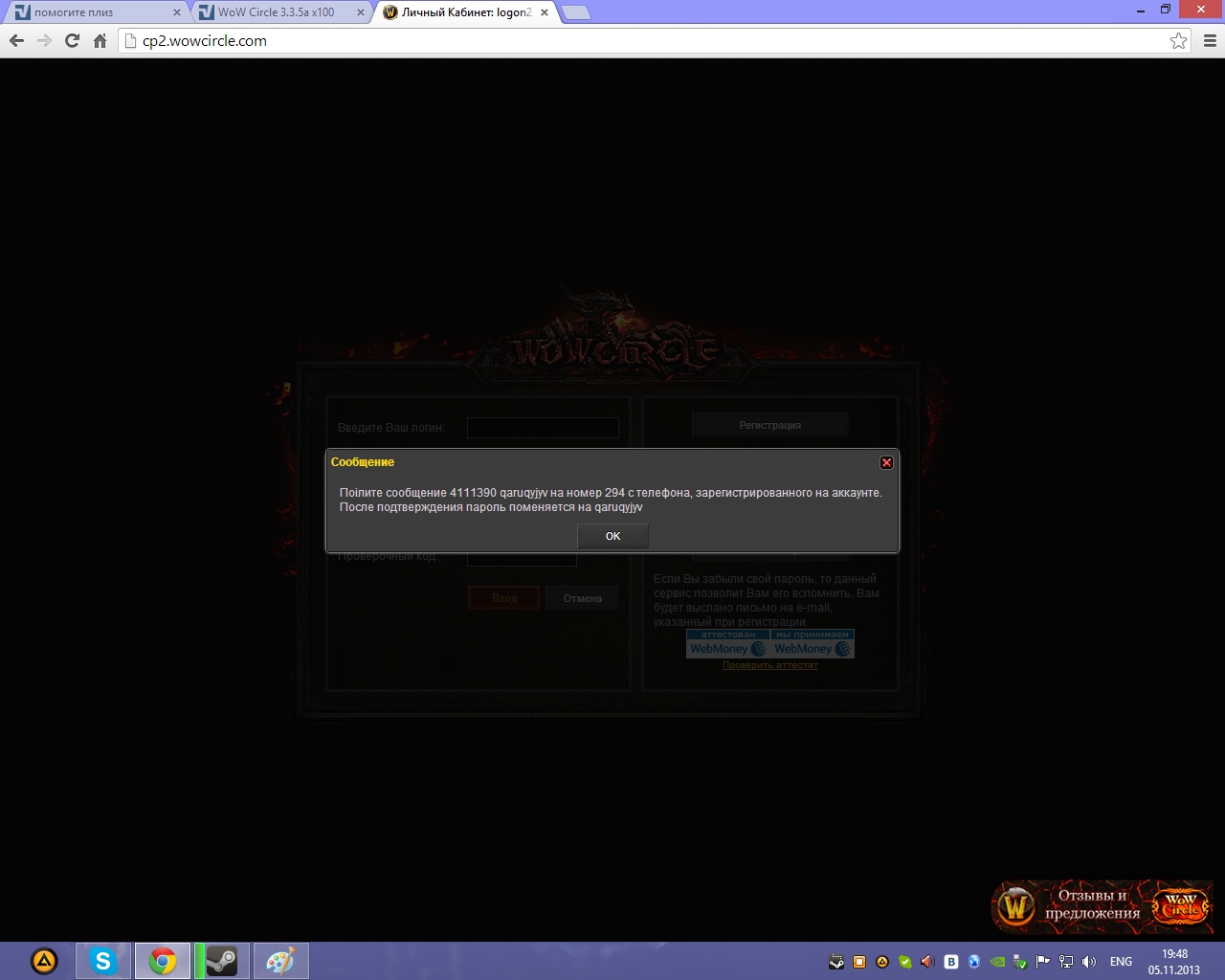 Screenshot_2013-11-22-13-28-07.jpg , а это скрин телефона, подскажите как теперь восстановить пароль от аккаунта, с Хантом, логин Andreman4141, емейл имеется, все есть, только из-за привязки к телефону, восстановить не могу, прошу помочь, советом мб каким.
