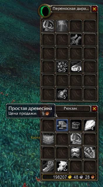 2. Часто при попытке продажи вещей торговцам некоторые предметы багуются: остаются в сумке, но теперь подсвечиваются серым цветом и их невозможно продать, использовать или перетянуть в другую ячейку. При наведении мышки отображается информация о предмете (на скриншоте пример с древесиной).