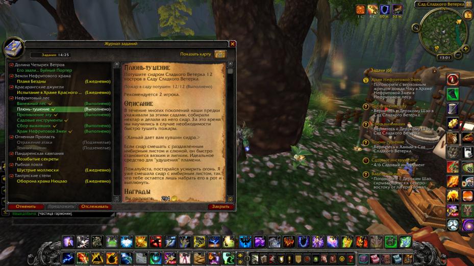 3. Подходим к горящему дереву,кустику и т.д. и юзаем возле задания на Сидр Сладкого Ветерка!