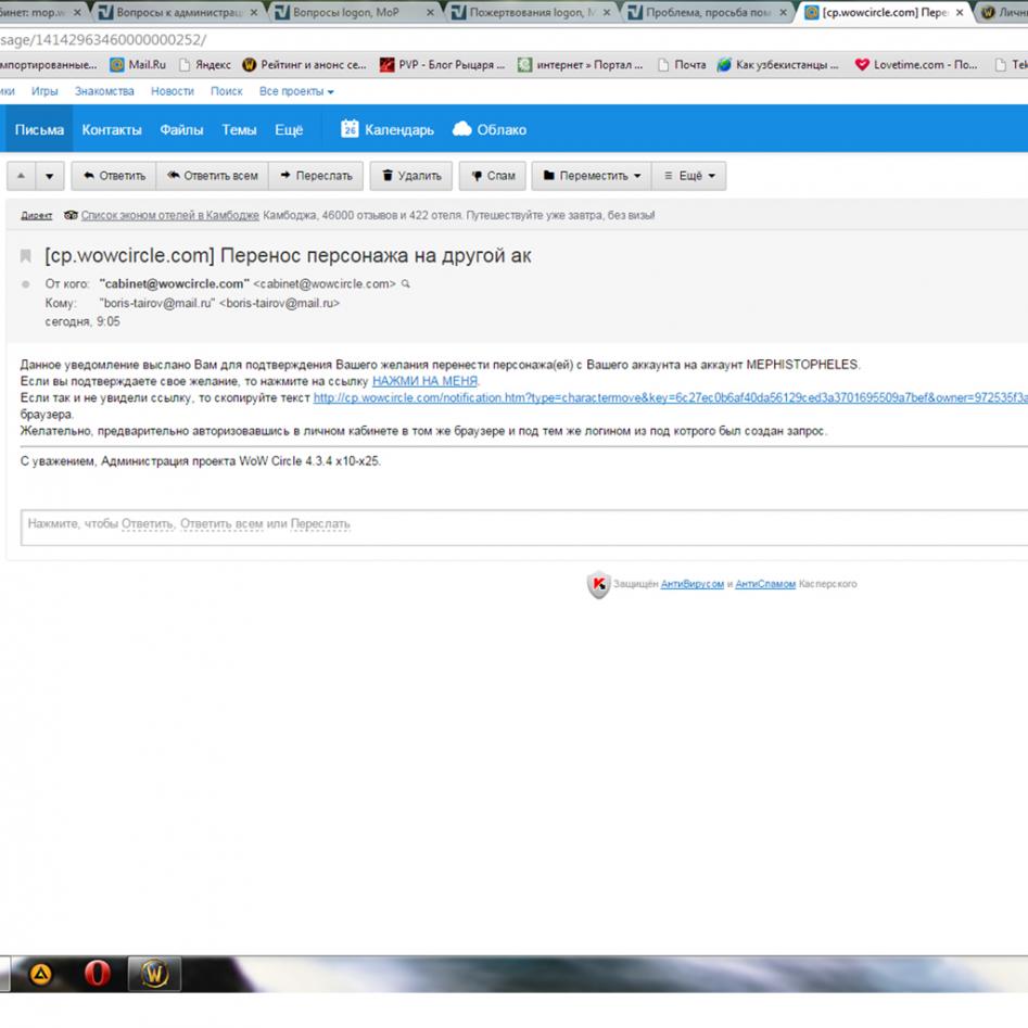 Если нужно вот скрин письма которое пришло на почту при попытке перекинуть персонажа.