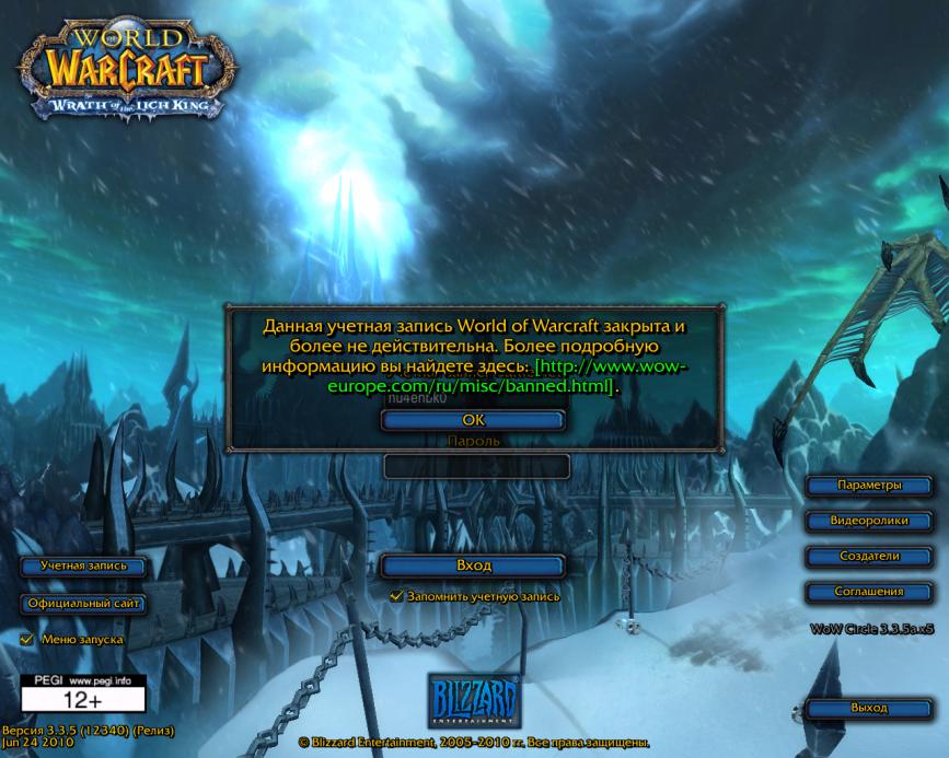 логин/пароль верные, т.к. в лк захожу свободно. там же, в лк, выставил "тип аккаунта Wrath of the Lich King". теперь вопрос: с чем может быть связана ошибка входа?