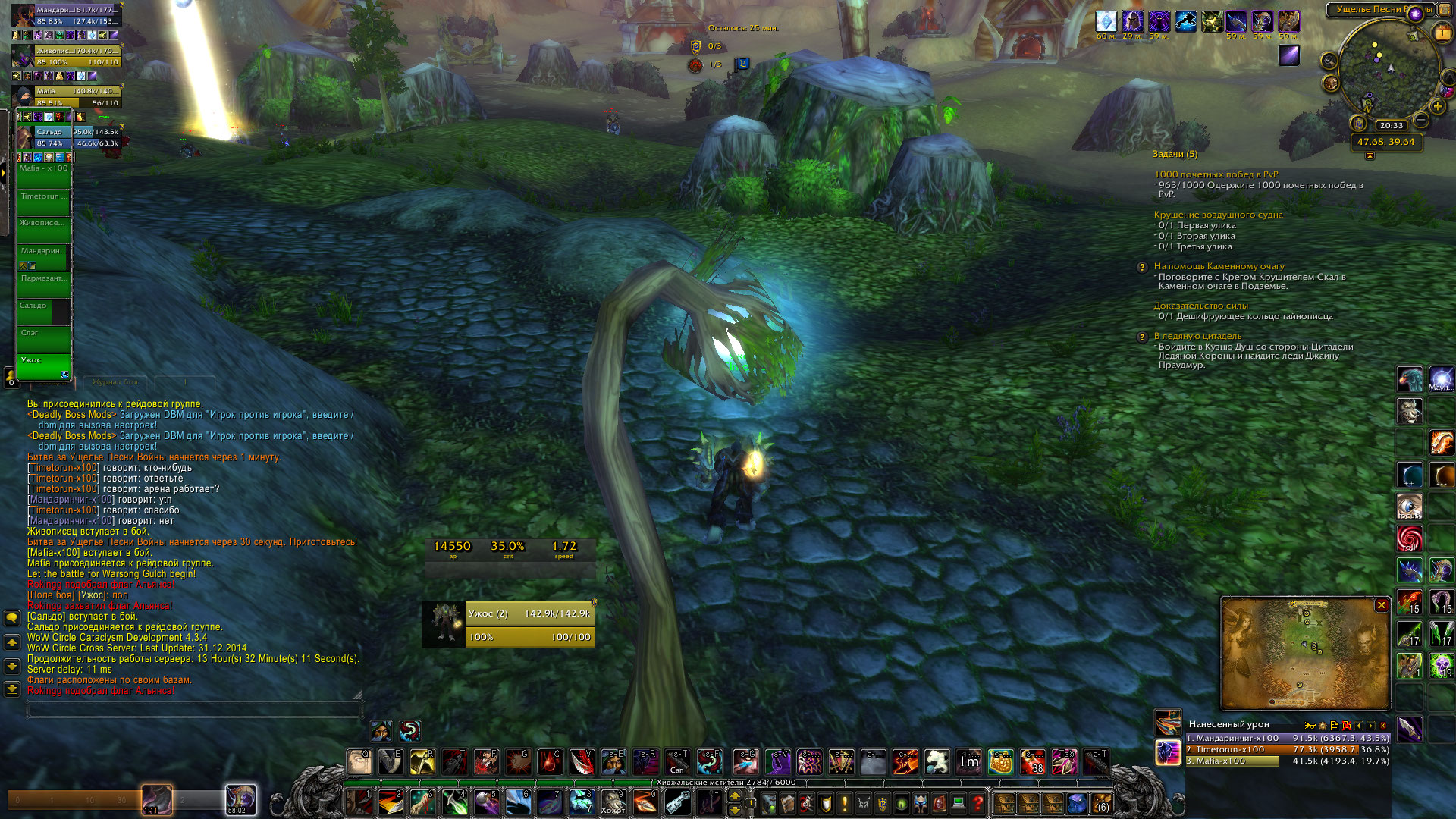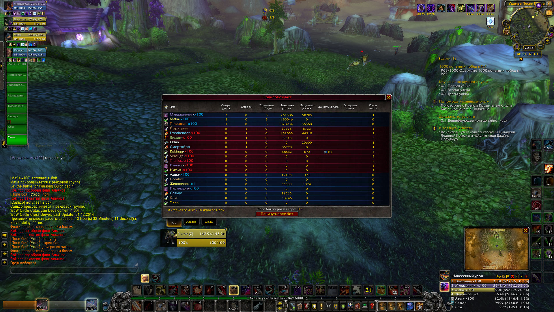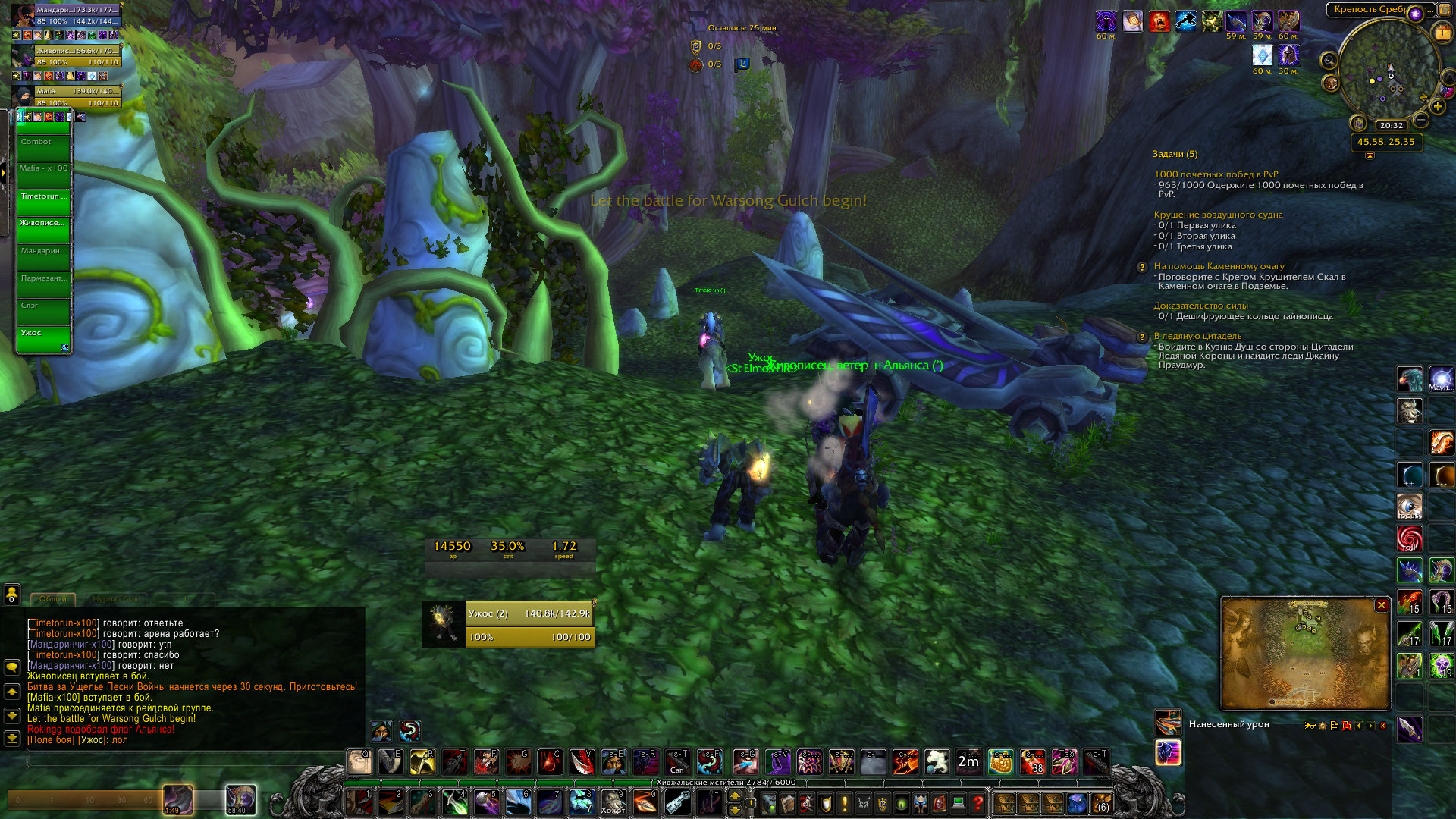 2)Телепортился или быстро летал я хз, но за пол минуты после начала боя орда выиграла..все 3 флага он поставил..на скринах есть время под миникартой