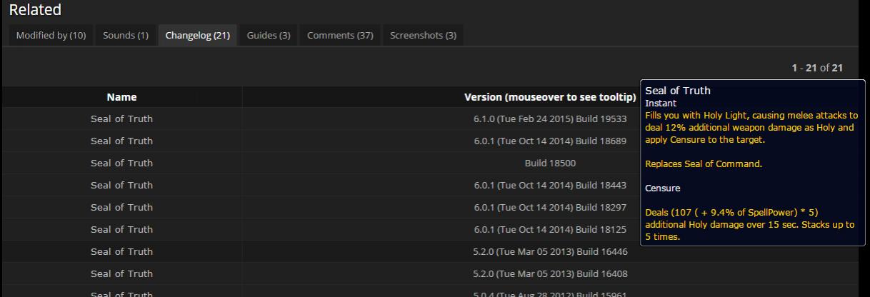 1. http://www.wowhead.com/spell=31801/seal-of-truth/http://ru.wowhead.com/spell=31801/seal-of-justice. Ченджлог спелла с вовхеда для 5.х