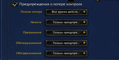 2) Нет отображения времени потери контроля над персонажем в центре экрана.