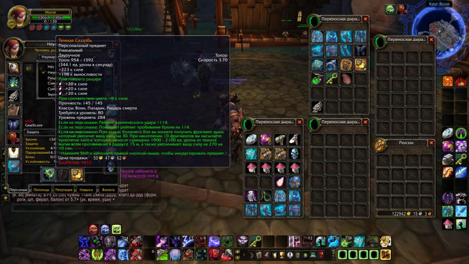 Рыцарь смерти PvP - 6591гс, PvE - 6757, Танк - 6280, 1000 бонусов!!!Стоит на лк!!!