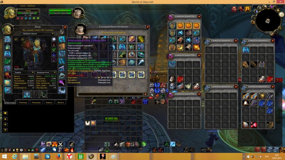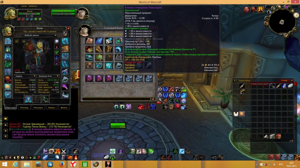Надел различный шмот, чтобы видели что видели что есть из лучшего, чешка гер,рамаландин гер,воятель гер,плечи, чест, клык гер,пве слабое а7 онли, шма нет но есть грань,+ все квесты+ 1 осколок, осталось собрать 49, играл восновном пве контент