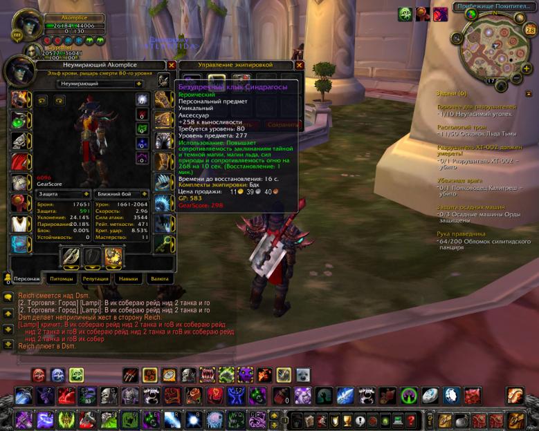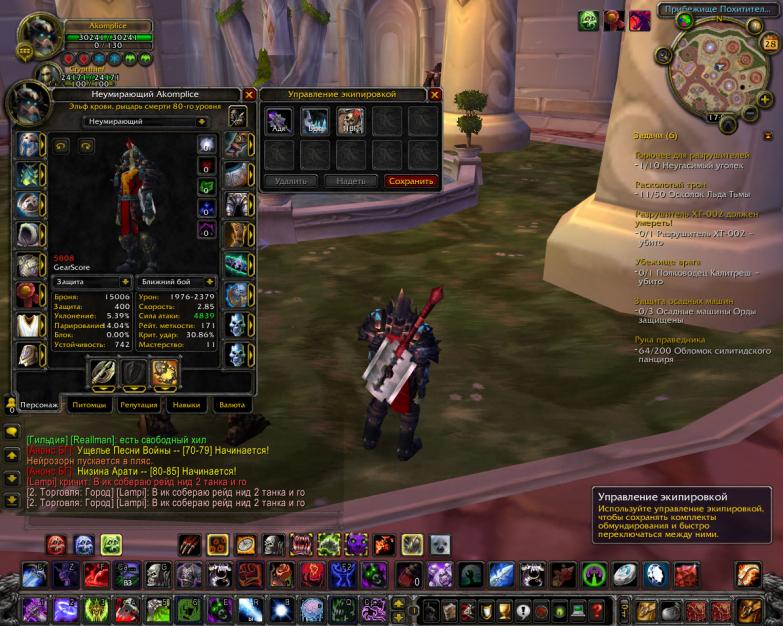 2.3 спека : Адк(6.1)(3 бис шмотки) БДК(6.1)(3 бис шмотки) и ПВП(фул а7(1а8)),есть брин для пвп, на всех спеках бис трыни: Череп гер, Приговор гер, Воля , Клык гер, Ключ.(Пвп медальон)