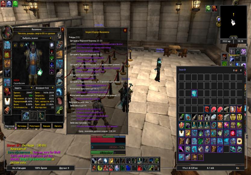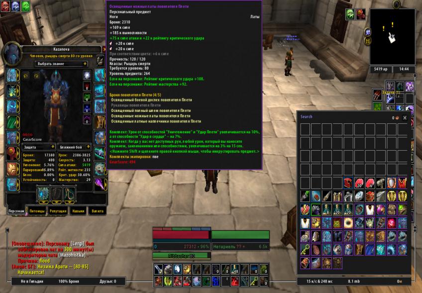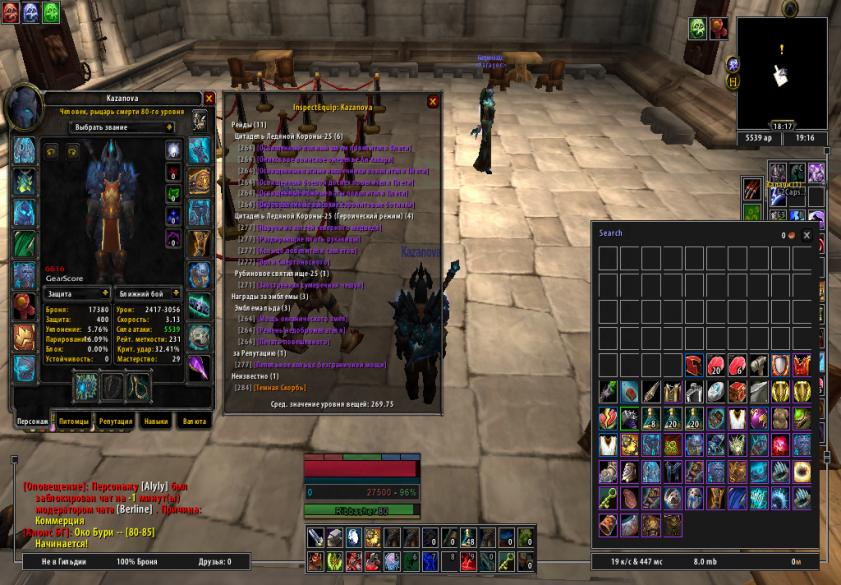5.Хорошо одет//из оружия имеется Тёмная скорбь(легендарный топор)Бринтроль костяной судья(цлк 25 об)Клинок очищения рамаладни(цлк10гер)Клеймор охранника цитадели(цлк10гер)тринкеты Воля смертоносного(цлк25гер) Заостренная сумеречная чешуя(рс25 об) для танка есть ключ,сердце,орган танком мало играл поэтому в танка т10 1 чуть подфармить льда и есть токены чтобы на изи сделать танка//пвп фул а8 обвес3/5а8 голова плечиа7 ибо несильно играл в пвп но есть достаточное количество АПА при поднятии рейтинга сразу купите что нужно//в пвп есть возможность сделать пве обвес, в пве имеется 4т10(2) из обвеса(Раздирающие плоть рукавицы(цлк25гер)Кольцо повелителя скелетов(цлк25гер) Наручи из когтей северного медведя(цлк25гер) Ониксовое воинское ожерелье Анкахара(цлк 25об) Окровавленые высокие саронитовые ботинки(цлк 25об) так же есть возможность из пве анхоли сделать пве блада для этого есть нон сет с арп статами такие как Перчатки скрытности алдрианы(цлк25гер) Сила гнили(цлк 25об) Ремешок ваятеля плоти(цлк10гер) вам всего лишь поменять несколько камней на арп и вуаля.из профессий вкачано Ювелирное дело и Кузнечное дело ибо по подсчету статами дает больше+/ну весь шмот перечислять небуду более менее видно на скринах/Наиграно 45дней.Имеется много разных званий Так же есть много ачивок по фану, есть легендарный маунт Черный киражский боевой танк + Пепел Алара.так же есть много разного трансмута в банке////если кого интересует могу показать в игре,а так вообше персонаж стоит в личном кабинете