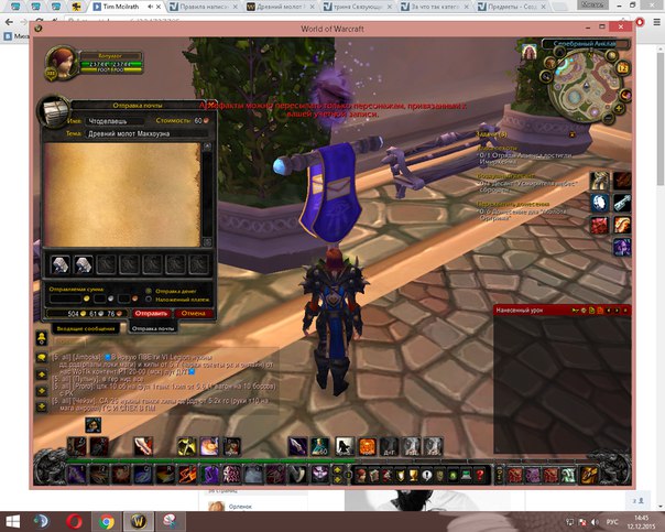 2. Не могу передать данный предмет - "Древний молот Макхоуэна"; Именуемый как "Наследуемый" "Древний молот Макхоуэна" с одного персонажа моей учетной записи на другого... Суть проблемы в том что пишет - "Артефакты можно пересылать только персонажем, привязанным к учетной записи" данный персонаж разумеется на моей учетной записи, проверял правильность написания никнейма, делал