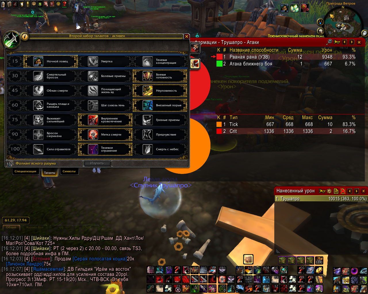 3) у нас он увеличивает урон потроше , удару в спину, внезапке... а рапче нет... (тут я не знаю как должно быть, 5% доп урон саба плюсуется к рапче с инвиза,а ловец нет) если он увеличивает урон потрошения, то почему не увеличивает урон рапче? или же если не увеличивает урон рапчи, то почему увеличивает урон потроши? которая тоже считается завершающим приемом ??? тут какой то баг есть