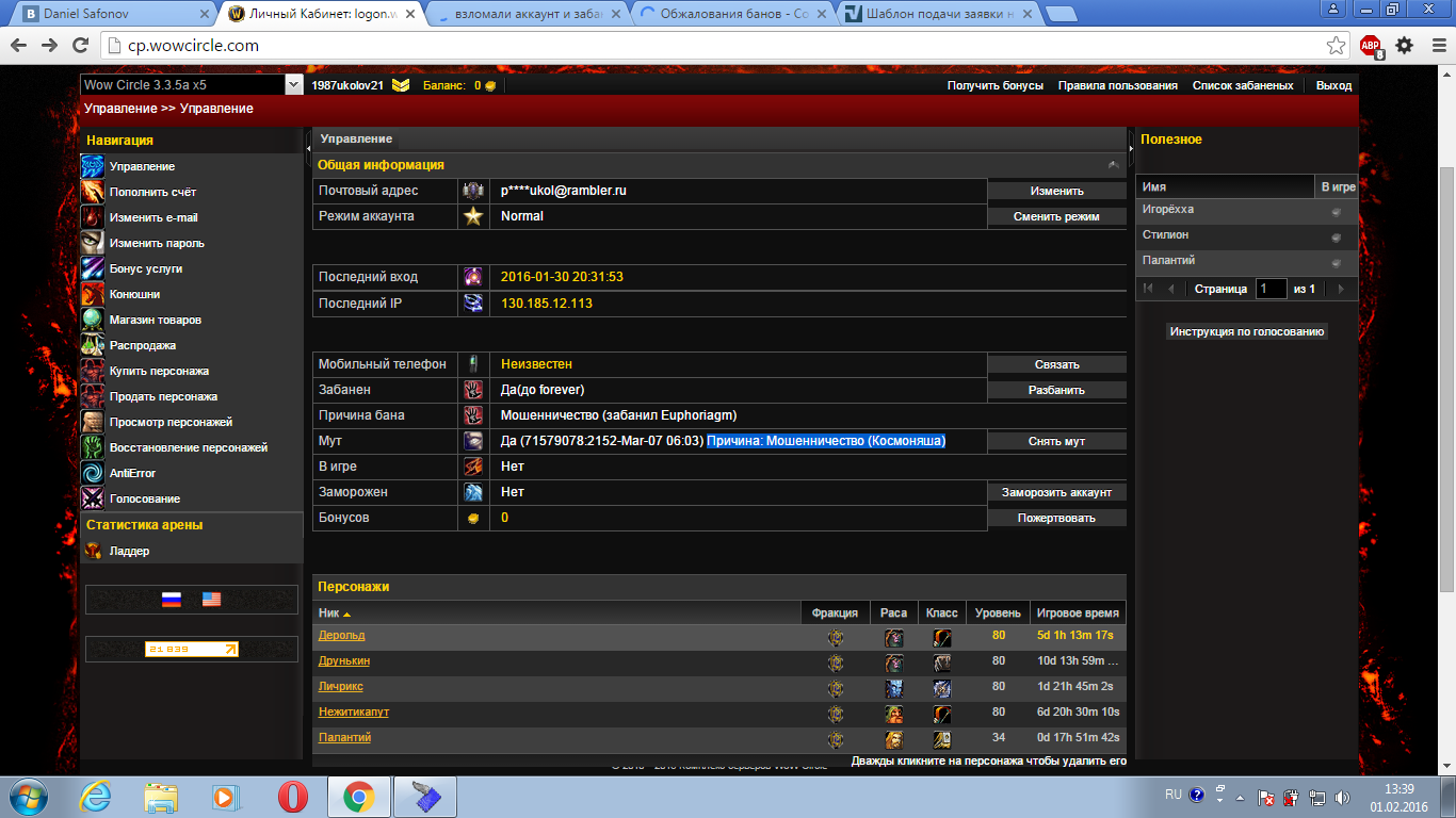4. Играл вечером все было отлично, на следующий день зайдя на свой аккаунт обнаружил бан на весь игровой чат, а после на следующий день получил бан на весь аккаунт. В лк посмотрел причину (Мошенничество) и не понял за что меня так наказали. Админы помогите восстановить аккаунт