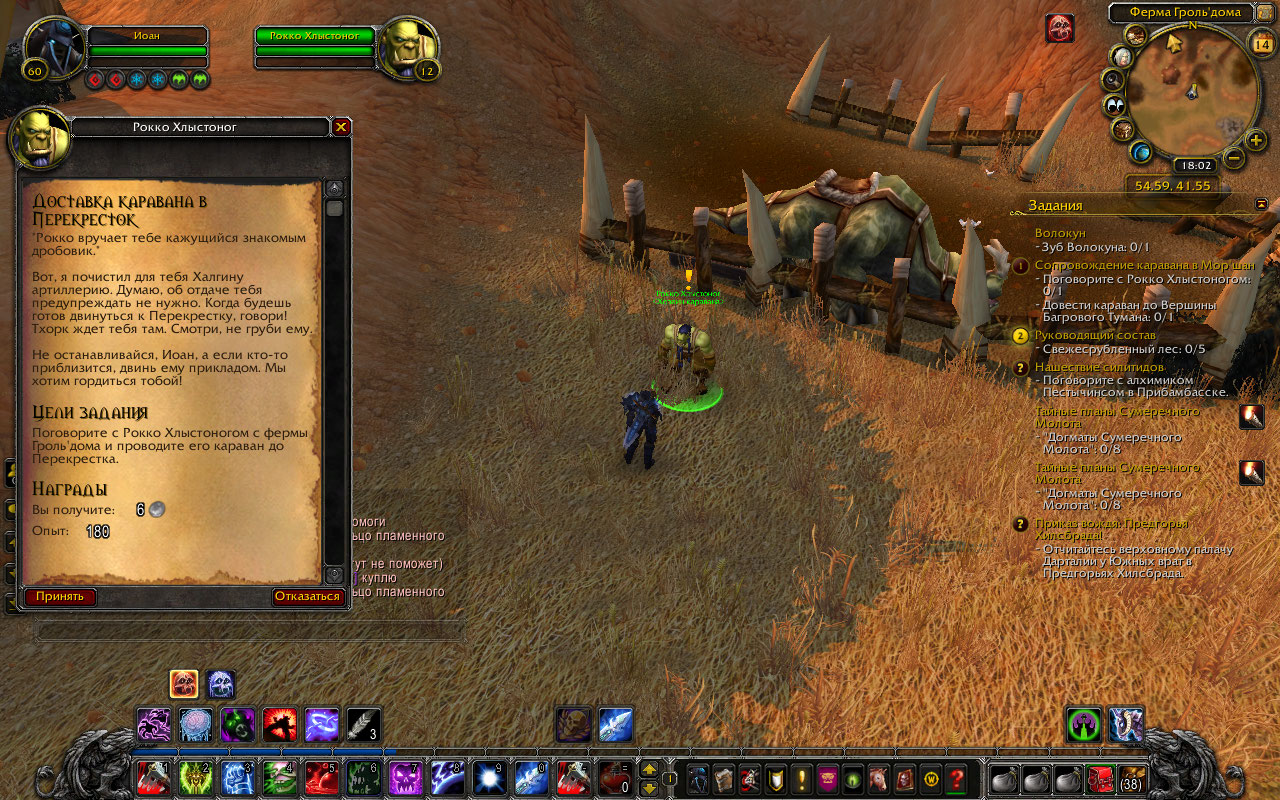 Поговорите с Рокко Хлыстоногом с фермы Гроль'дома и проводите его караван до Перекрестка.