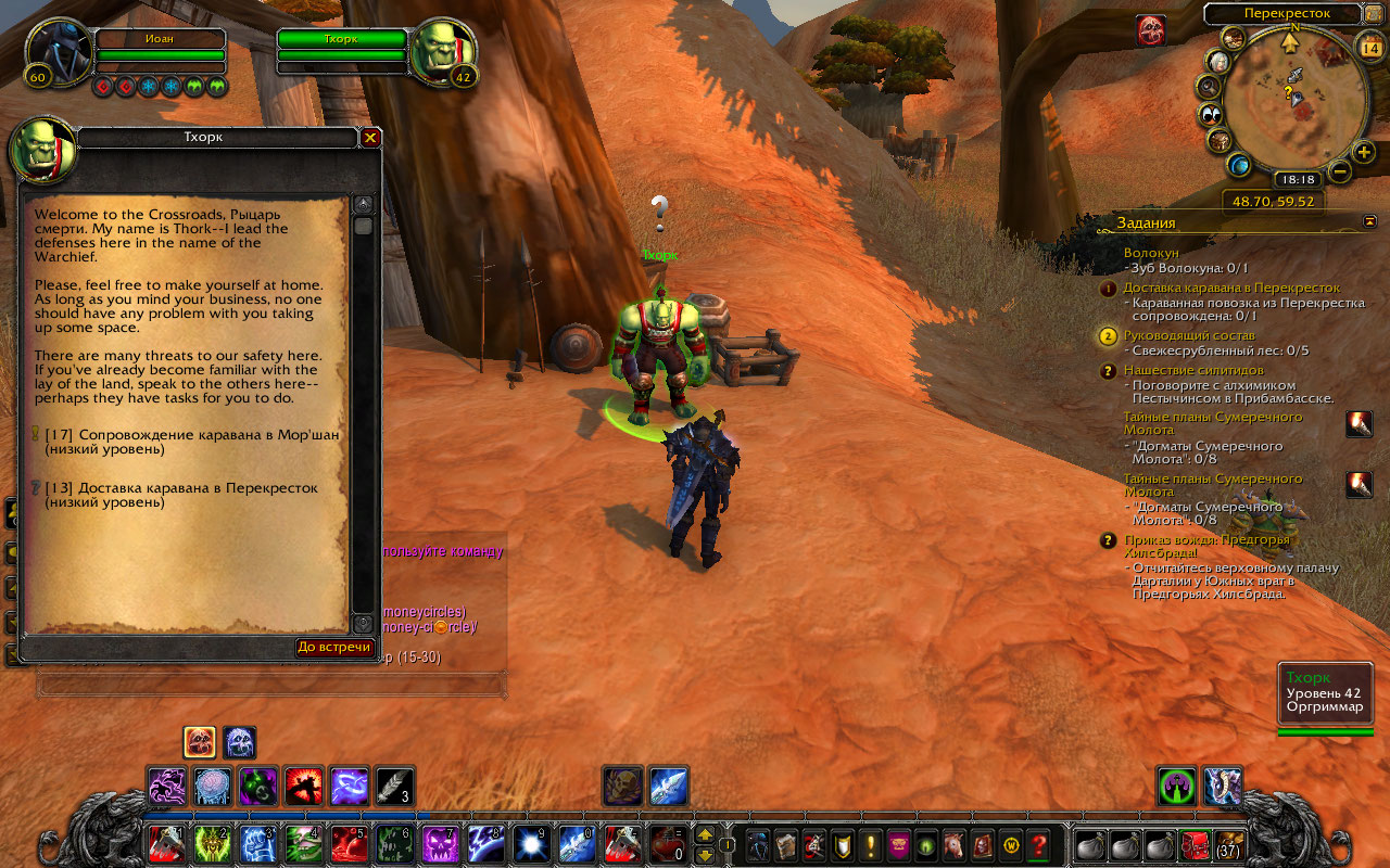 2. Задание должен довать Тхорк (http://ru.wowhead.com/npc=3429), а окончание у Нагала Хлыстоног <Поставщик каравана> (http://ru.wowhead.com/npc=52207) нужно говорить с Рокко Хлыстоногом который отсутствует, караван отсутствует.