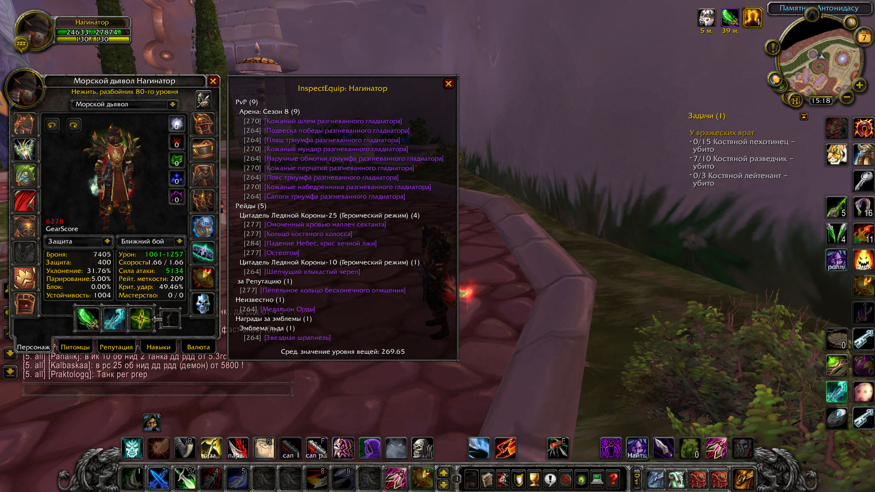 1. Ник: Нагинатор, фракция: орда( нежить ), мути пве 6485/ пвп 6278 ( шд 6305 ), цена: минималка, сервер: х100