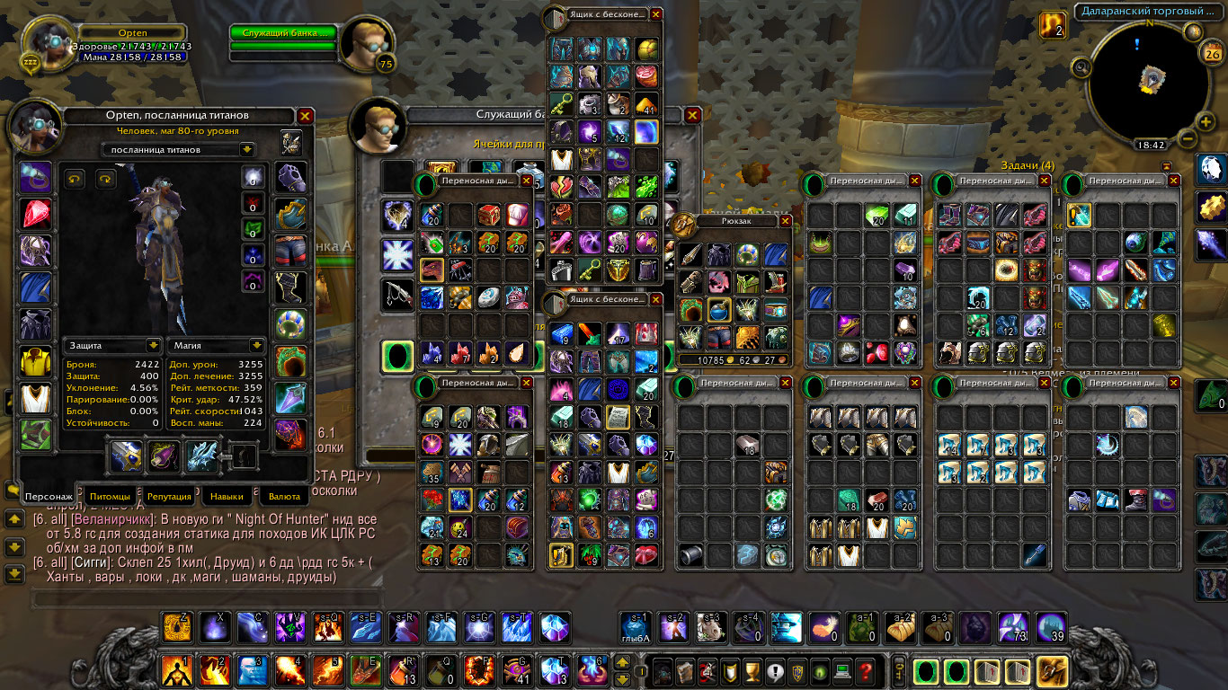 1. Opten Alliance 6557+ аркан\фаер 8 стр спутников 10 стр маунтов , много трансмута , куча всего.